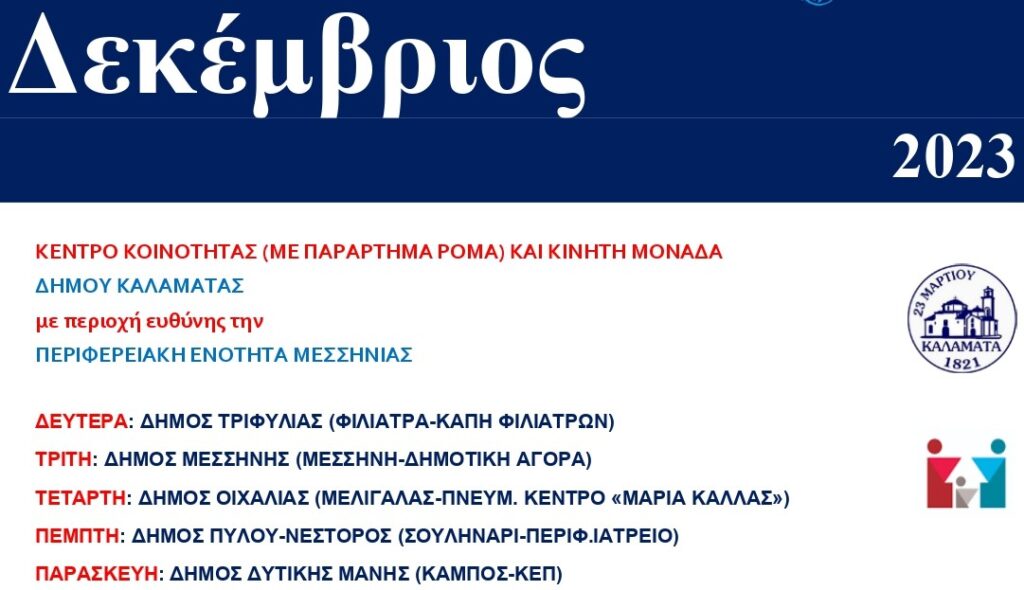ΠΡΟΓΡΑΜΜΑ ΕΠΙΣΚΕΨΕΩΝ – ΔΕΚΕΜΒΡΙΟΣ 2023 – ΚΙΝΗΤΗΣ ΜΟΝΑΔΑΣ ΚΕΝΤΡΟΥ ΚΟΙΝΟΤΗΤΑΣ Ν.ΜΕΣΣΗΝΙΑΣ ΣΤΟ ΔΗΜΟ ΠΥΛΟΥ – ΝΕΣΤΟΡΟΣ