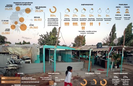 Περίπου 30.000 άνθρωποι κατοικούν σε «κανονικά» σπίτια ή διαμερίσματα, τα οποία κατά βάσιν βρίσκονται σε υποβαθμισμένες περιοχές αλλά εντός του αστικού ιστού. Με βάση τα στοιχεία της καταγραφής, 13.786 άτομα κατοικούν μέσα στις πόλεις διάσπαρτα και είναι απολύτως ενταγμένα στις τοπικές κοινωνίες. Περίπου 20.000 άνθρωποι, όμως, ζουν σε πολύ δύσκολες συνθήκες σε καταυλισμούς με σκηνές, αυτοσχέδιες καλύβες ή παραπήγματα.