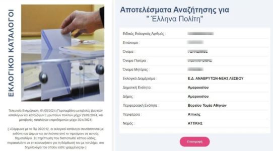 Στον «αέρα» και ενημερωμένη είναι η πλατφόρμα του υπουργείου Εσωτερικών «Μάθε που ψηφίζεις» όπου οι πολίτες μπορούν να μπουν κι να ενημερωθούν για το εκλογικό τους τμήμα.