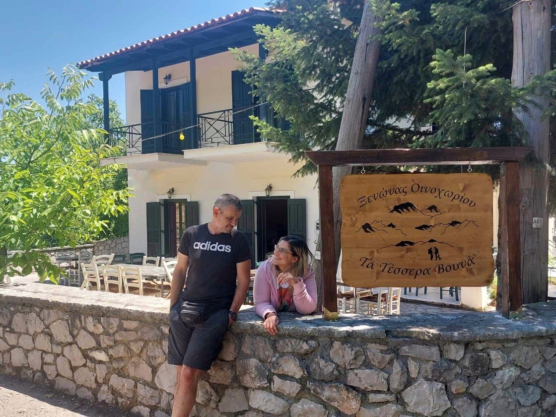 Ήρθαμε εδώ χωρίς κάποιο ιδιαίτερο budget στην άκρη, νοικιάσαμε το μοναδικό σπίτι του χωριού που ήταν διαθέσιμο και ξεκινήσαμε να φτιάχνουμε τον ξενώνα. Στόχος μας ήταν να συνδυάσουμε όλα όσα αγαπάμε. Το βουνό, τη φιλοξενία, τη φύση. Να γνωρίσουμε ανθρώπους με την ίδια αγάπη και να μοιραστούμε ιστορίες, να εμπνεύσουμε και να εμπνευστούμε. Κάπως έτσι ξεκινήσαμε την ανακαίνιση του ξενώνα, που ονομάστηκε «Τα τέσσερα βουνά», από την Οίτη, τον Παρνασσό και φυσικά την Γκιώνα και τα Βαρδούσια.