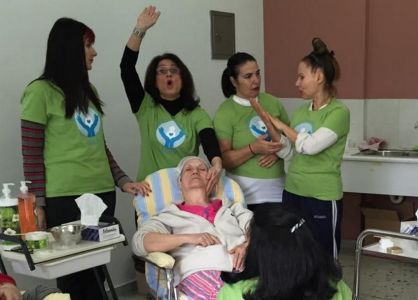 «Μόλις ερχόταν μία/ένας ασθενής ξάπλωνε στη ροζ πολυθρόνα και εμείς πάνω από το κεφάλι τους, ξεκινούσαμε τη ρουτίνα περιποίησης με καθαρισμό. Καθαρίζαμε το πρόσωπο με γαλάκτωμα, βάζαμε λοσιόν και μετά, την κρέμα κάνοντας παράλληλα μασάζ. Στο τέλος βάζαμε και κάποια μάσκα. Τους κάναμε μασάζ στο πρόσωπο, στον αυχένα και στον λαιμό. Παράλληλα, μαθαίναμε τις γυναίκες πώς να φροντίζουν μόνες τους το πρόσωπό τους αλλά και πώς να βάφονται. Το μακιγιάζ ήταν δύσκολο. Στην ομάδα είχαμε κι έναν κομμωτή. Ο Ναπολέων ήταν σπουδαίος κομμωτής. Συμπεριφερόταν στις ασθενείς και στις ηλικιωμένες που πηγαίναμε στα γηροκομεία λες και ήταν πριγκίπισσες. Πήγαινε με το περιοδικό μπροστά τους, έκανε υπόκλιση και τις ρωτούσε πως προτιμούν τα μαλλιά τους. Έκανε πραγματικά πολύ ωραίες κουπ και ωραία χτενίσματα».