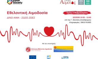 Στις 3 Φεβρουαρίου δίνουμε αίμα, δίνουμε ζωή στην Κέρκυρα